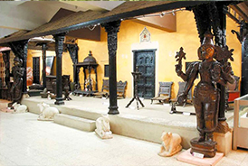 The Raja Dinkar Kelkar Museum is in Pune, Maharashtra, India. It contains the collection of Dr. Dinkar G. Kelkar (1896–1990), dedicated to the memory of his only son, Raja.The three-storey building houses various sculptures dating back to the 14th century.[citation needed] There are also ornaments made of ivory, silver and gold, musical instruments (a particularly fine collection)[citation needed], war weapons and vessels. The collection was started around 1920 and by 1960 it contained around 15,000 objects. In 1962, Dr. Kelkar handed his collection to the Department of Archaeology within the Government of Maharashtra.